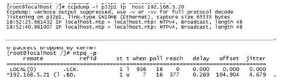 客戶端確實接受到廣播包,在客戶端執(zhí)行ntpq –p,發(fā)現(xiàn)客戶端不鎖定廣播地址,而是將A地址選擇的參考源。